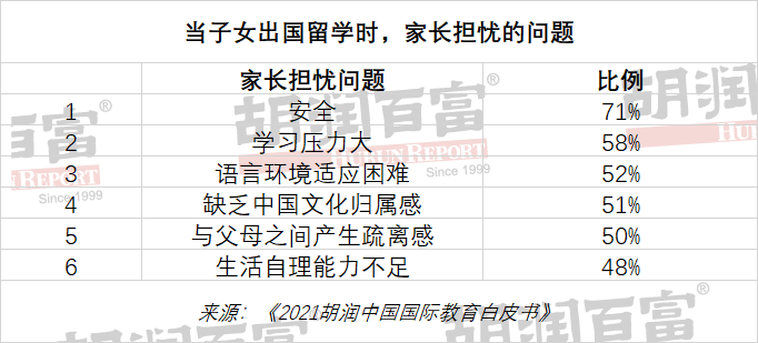 《2021胡润中国国际教育白皮书》中指出,有国际教育经历的人认为,留学生遇到的首要问题是语言环境适应困难,其次才是安全。