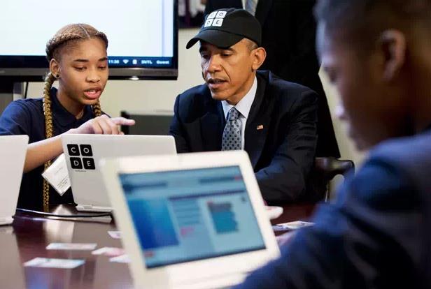 为了庆祝“计算机科学教育周”正式启动,奥巴马编写了一段很简单的计算机代码,实现了在屏幕上显示一个正方形的功能,他也成为了美国历史上首位编写计算机程序的总统