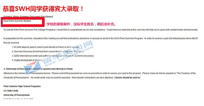 宾大暑期课程OFFER: