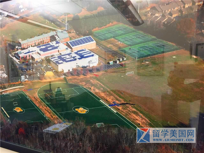 学校大概有40幢教学楼,两所图书馆,办公室管理、招生、学院活动咨询、暑期项目都集中于此。除此之外,还有一个乐队室、两个合唱房间和三个视觉艺术工作室。作为生活和休息的环境,学校还为学生配备了餐厅、音乐厅、剧院、休息室等设施。其他体育设施还包括一个室内游泳池、网球场、足球场、棒球场和垒球场,为学生提供了多种多样的活动场所。