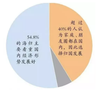 数据显示,2017年的归国人数预计突破60万,这个数字将明显超过今年出国留学的总人数。据海外人才职业发展平台Lockin China 发布的《2017海外人才就业分析报告》显示,54.8%的海归主要看重国内经济形势发展好,还有超过40%的人认为家庭、朋友圈都在国内,因此选择归国发展。另一个重要因素是,美国、英国以及澳大利亚移民政策收紧,留学生毕业后难以留在留学国家继续发展,而美国、英国和澳大利亚留学的学生就占比超过56%,因此造成了大批的海外留学生归国的现象。