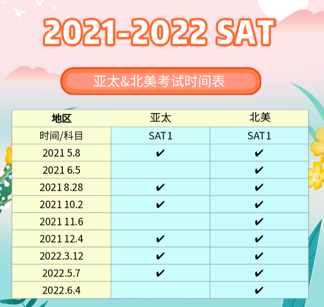 2021-2022年SAT考试时间详细介绍