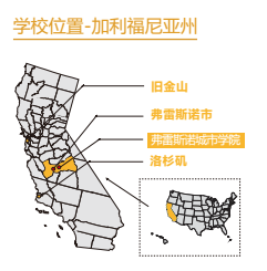 学校位于加利福尼亚州弗雷斯诺市,这里全年阳光明媚,气候温和。弗雷斯诺复临学院的优秀教育历史超过百年,一贯坚持严格、公正、公平的特色的卓越理念来办学。