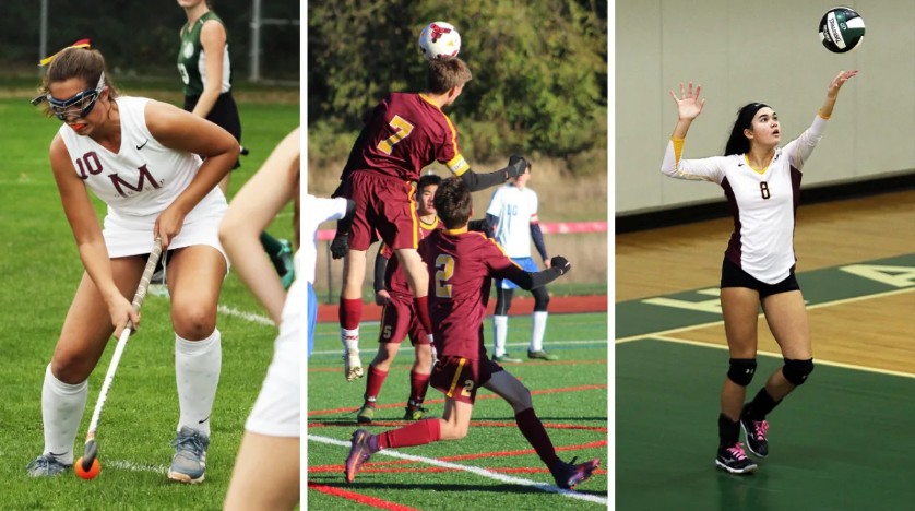 羽毛球, 棒球, 篮球, 船员, 越野, 赛马场曲棍球, 高尔夫, 曲棍球, 足球, 垒球, 游泳, 网球, 田径, 终极飞盘, 排球, 冬季径迹, 摔跤